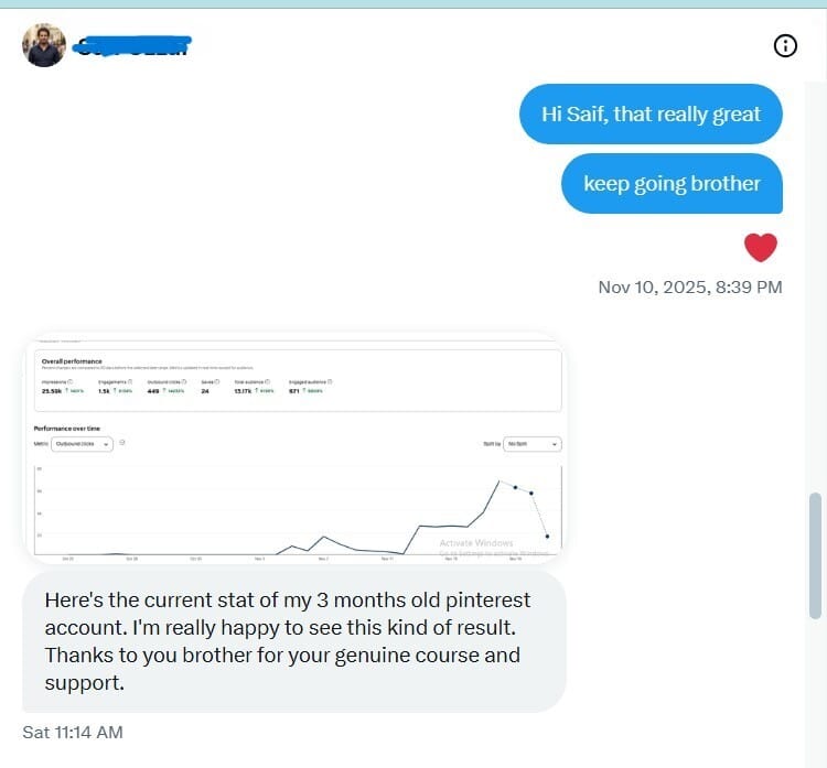 The guy followed the system. Did the work. And now his Pinterest account is printing traffic while everyone else is still "planning to start someday."
